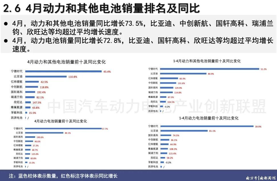 依靠垂直整合模式带来的优势,比亚迪已在此轮竞争中尽显锋芒,其4月装车量14.17 GWh中几乎全部来自磷酸铁锂电池,市占率环比提升1.83个百分点至26.35%,与宁德时代的整体差距已经缩小至13.09%,创近18个月最低。